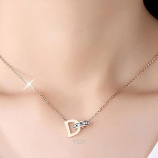 Ygt Vòng cổ Thép Titan Mặt Chữ D Đính Kim Cương Thời Trang Dành Cho Nữ