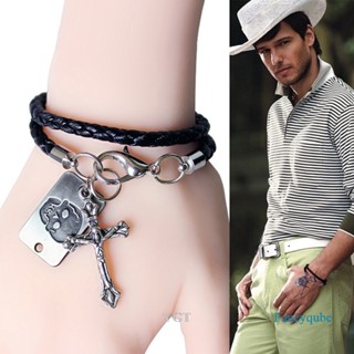 Ygt Vòng Tay Dây Da Bện Đính Mặt Đầu Lâu Ngôi Sao Phong Cách Punk Cá Tính