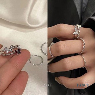 Ygt Set 4 Nhẫn Mở Đeo Khớp Ngón Tay Bằng Hợp Kim Họa Tiết Bướm Hình Học Cá Tính Dành Cho Nữ