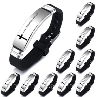 Ygt Vòng Tay Silicone Phối Mặt Thánh Giá Chất Liệu Thép Không Gỉ