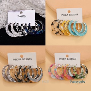 Ygt Set 3 Đôi Bông Tai Tròn Họa Tiết Da Báo Bằng Acrylic Thời Trang Cho Nữ