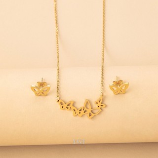 Bộ Vòng cổ + Bông Tai Hình Bướm Bằng Thép Không Gỉ Dễ Thương Cho Nữ