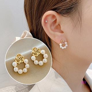 Khuyên Tai Hình Tròn Đính Hoa Trà Và Ngọc Trai Thời Trang Cho Nữ