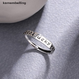 Kamembelling Nhẫn Hở Mạ Bạc 925 In Chữ lucky Phong Cách hip hop Hàn Quốc Thời Trang Cho Nữ