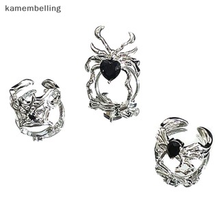 Nhẫn Hở Hình Mạng Nhện Đính Đá Màu Đen Phong Cách Gothic Punk Thời Trang Cho Nữ