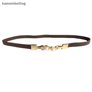Thắt Lưng Dây Mảnh Co Giãn Màu Đen Đính Ngọc Trai Thanh Lịch Cho Nữ