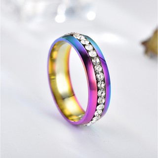 Nhẫn nam nữ Titan xi 7 màu 1 hàng đá trắng đẹp - N670