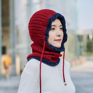 Mũ len trùm đầu liền khăn cổ lót lông ấm áp- quà tặng cha mẹ