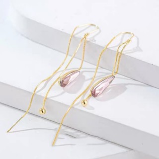 Khuyên Tai Dáng Dài Đính Đá Thạch Anh Tím Cao Cấp Thời Trang Mới Đơn Giản Dễ Phối Đồ Dành Cho Bạn Nữ