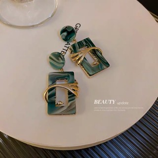 Bông Tai Mạ Bạc 925 Hình Vuông Màu Xanh Lá Phong Cách Hàn Quốc Sang Trọng Độc Đáo Cao Cấp