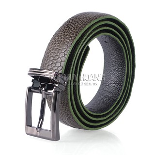 Dây nịt nam da cá sấu Huy Hoàng nguyên con bụng 4P đầu kim màu xanh rêu HP4782