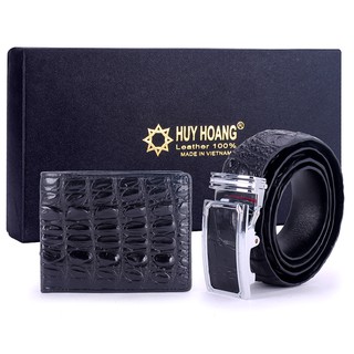Bóp và Dây nịt nam Huy Hoàng da cá sấu gai đuôi màu đen HP2207-HP4210