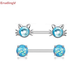 1 Khuyên Nhũ Hoa / Nhũ Hoa Bằng Thép Không Gỉ Hình Mèo Đính Pha Lê Xanh Dương Thời Trang