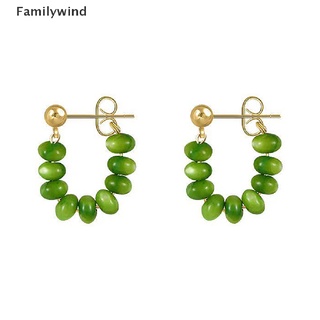 Khuyên Tai Lủng Lẳng Đính Đá Mắt Mèo Màu Xanh Lá Thời Trang Cho Nữ