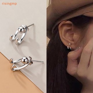 [risingmp] Bông Tai Bạc S925 Xỏ Hạt Đôi Đơn Giản Thời Trang Hàn Quốc