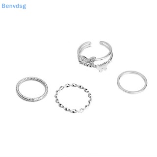 Bộ 4 Nhẫn Hình Tròn Họa Tiết Bướm Màu Bạc Tùy Chỉnh Thời Trang Cho Nữ