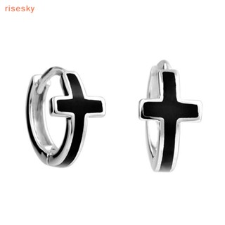 Bông Tai Mạ Bạc 925 Hình Thánh Giá Màu Đen Phong Cách Hàn Quốc Cá Tính Cho Nam