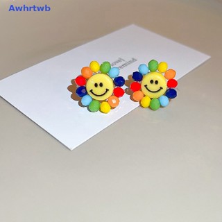 Awhrtwb Khuyên Tai Xỏ Hạt Resin Hình Hoa Hướng Dương Đính Ngọc Trai Không Đối Xứng Màu Sắc Ngẫu Nhiên Thời Trang Hàn Quốc