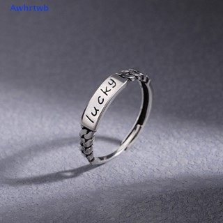 Nhẫn Hở Mạ Bạc 925 Khắc Chữ lucky Phong Cách hip hop Hàn Quốc Thời Trang Cho Nữ Mới