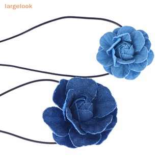 Vòng Cổ Choker Vải Jean Mặt Hình Hoa Hồng Lớn Thắt Nút Thanh Lịch Có Thể Điều Chỉnh Cho Nữ