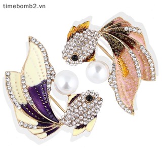Ghim Cài Áo Hình Cá Vàng Tráng Men Đính Đá Pha Lê