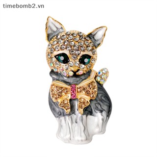 {Timebomb} Trâm Cài Áo Trang Trí Túi Xách Bằng Pha Lê Mắt Mèo Hoạt Hình Tráng Men Màu Xanh