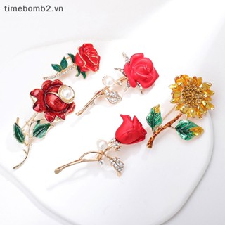 {Timebomb} Ghim Cài Áo Hình Hoa Đính Ngọc Trai Pha Lê Phong Cách Vintage Cho Nữ
