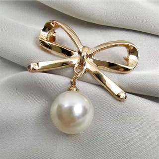 Ghim Cài Áo Kim Loại Hình Nơ Đính Ngọc Trai Giả Thời Trang