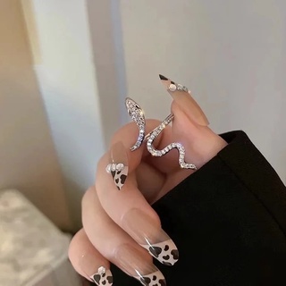 Nhẫn Hình Rắn Đính Đá Pha Lê Nhân Tạo Dạng Mở Thanh Lịch Có Thể Điều Chỉnh Phong Cách Punk Cổ Điển Cho Nam