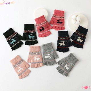LAYOR1 1 Đôi Găng Tay Len Hở Ngón Chạm Màn Hình Cảm Ứng Họa Tiết Hươu Hoạt Hình