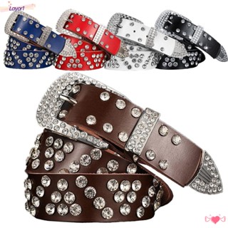 Layor1 Thắt Lưng Da Thật Đính Kim Tuyến Lấp Lánh Phong Cách Hip Hop Sang Trọng Dành Cho Nữ