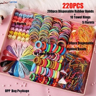 Set 220 dây cột tóc co giãn và kẹp tóc màu kẹo có túi đựng opp làm quà tặng cho bé gái