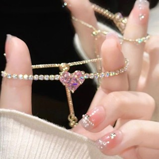 Vòng Tay Đính Đá Zircon Hình Trái Tim Màu Hồng Sang Trọng Cho Nữ