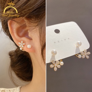 Khuyên tai chuôi bạc hình hoa đính ngọc trai sang trọng thời thượng cho nữ