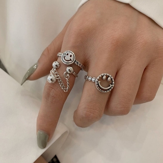 Nhẫn Mạ Bạc 925 Hai Lớp Hình Mặt Cười Thời Trang Cổ Điển Cho Nữ