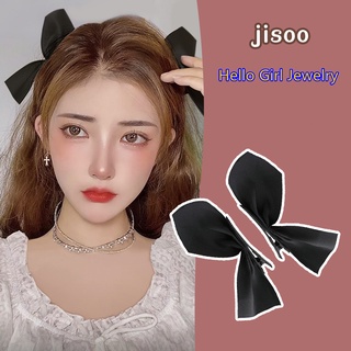 Kẹp tóc nữ nơ đen bằng cotton cho bên mái