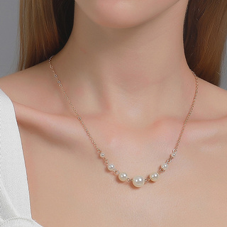 Vòng cổ sợi xích ngắn đính ngọc trai đơn giản thời trang Hàn Quốc cho nữ