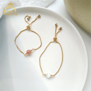 Vòng Đeo Tay Chuỗi Hạt Đá Pha Lê Màu Hồng / Vàng Thời Trang Cho Nữ