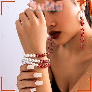 SUMU Vòng Tay Máu Ba Lớp Xỏ Hạt Nhựa Resin Màu Đỏ Cá Tính Phong Cách Gothic Dành Cho Nữ