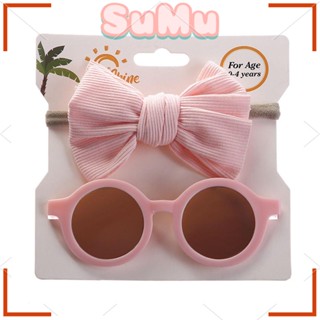 Bộ 2 Băng Đô Cài Tóc + Kính Mát Tròn Co Giãn Thời Trang Cho Bé