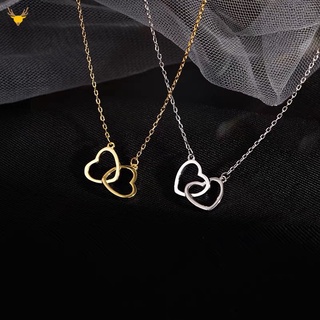 Vòng cổ Ngắn Mặt Trái Tim Đôi Màu Vàng/Bạc Cho Nữ
