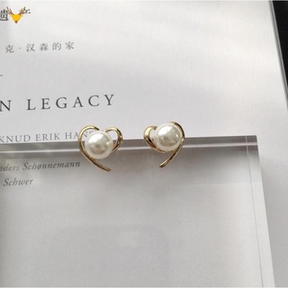 Khuyên Tai Hình Trái Tim Màu Vàng Đính Ngọc Trai Giả Dành Cho Nữ