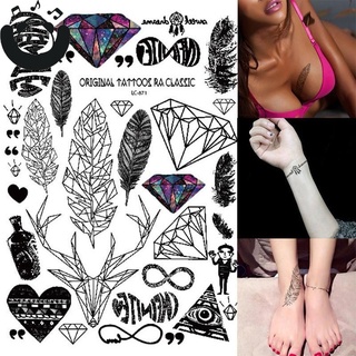 Miếng Dán Hình Xăm Tạm Thời Hình Lông Vũ Màu Đen Lấp Lánh