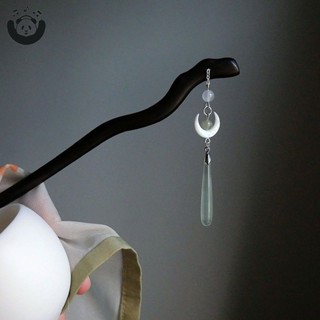 Trâm Cài Tóc Bằng Gỗ Màu Đen Phối Tua Rua Mặt Trăng Phong Cách Trung Hoa Cho Nữ