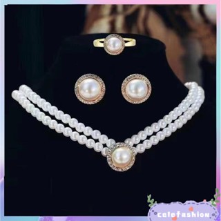 Bộ Vòng cổ + Bông Tai Đính Kim Cương Giả & Ngọc Trai Thời Trang Cho Nữ