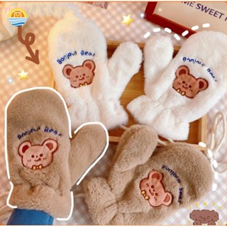 Găng Tay Nhung Lông Cừu Giữ Ấm Cổ Thêu Hình Gấu Dễ Thương HB HYJP2