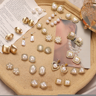 Bông Tai Hình Học Đính Ngọc Trai Sang Trọng Cổ Điển Dành Cho Nữ