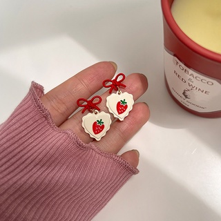 Bông Tai Bạc S925 Hình Trái Dâu Tây Đính Nơ Màu Trắng Dễ Thương Cho Nữ