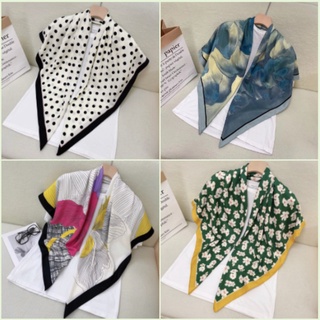 Khăn choàng cổ hình vuông cỡ 90cm chất liệu lụa satin họa tiết hoa phong cách mùa hè thời trang cho nữ WJ1004-83