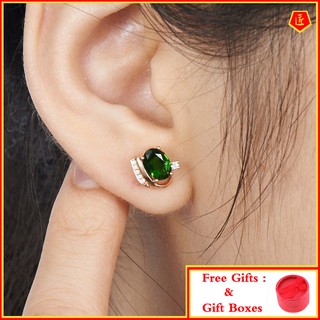 Khuyên Tai Đính Ngọc Lục Bảo Phong Cách Retro Cho Nữ
